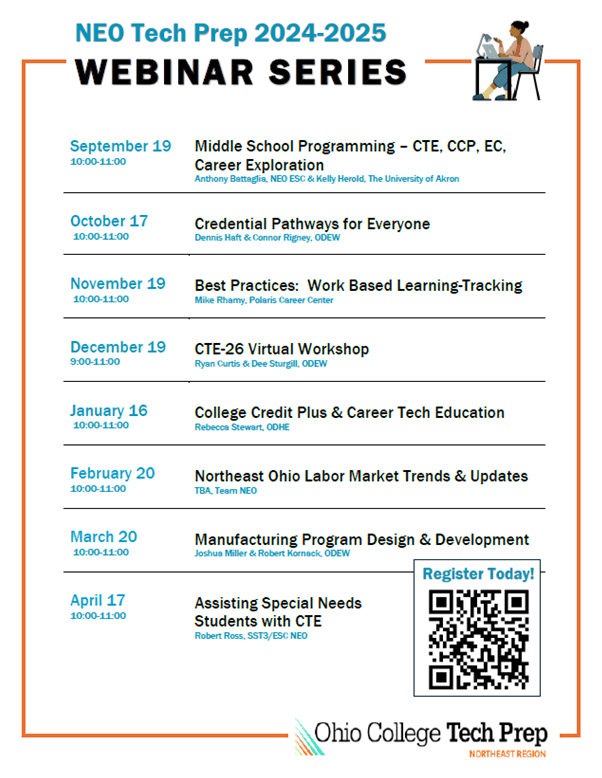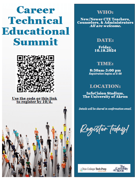 Join us on Friday, October 18th for the CTE New Educator’s Conference, to register, click the flier, or scan the QR code below: